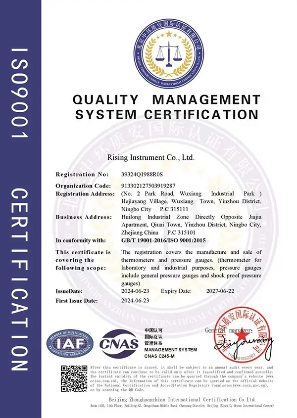 We ngadegake Ningbo Rising Instrument Co., Ltd. kanggo nyedhiyakake macem-macem instrumen industri kalebupengukur tekanan,termometer, segel kimia, thermo-manometer,pemancar tekanan utawa trandsducers, swithches tekanan, flow-meter, fitting tabung, katup instrumen lsp.